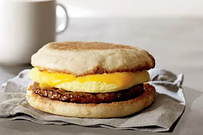 Der Frühstücksbuchse ist ein Hamburgerbrötchen mit gebratenen Eierschinken und amerikanischem Käse. Es hat eine bessere Ernährungszahlen mit 283 Kalorien 11 g Fett 4 g gesättigtes Fett und 16 g Protein. Wie bei vielen Fast-Food-Artikeln ist das Natrium hoch: 780 mg.