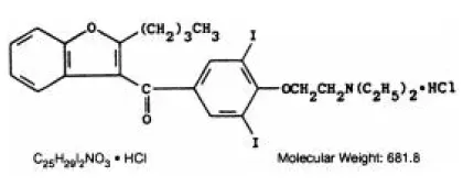 Cordaron (Amiodaron HCl) ist ein Antiarrhythmika, das für die orale Verabreichung als Pink -bewertete Tabletten mit 200 mg Amiodaronhydrochlorid zur Verfügung steht. Die vorhandenen inaktiven Inhaltsstoffe sind kolloidale Siliziumdioxid -Lactose -Magnesium -Stearat -Povidon -Stärke und FD
