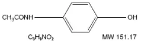 Acetaminophen 4'-Hydroxyacetanilid ist ein nicht-opiates nicht-salicylatalgetisches und antipyretisch, das als weißes, geruchloses kristallines Pulver auftritt und einen leicht bitteren Geschmack besitzt. Die molekulare Formel für Paracetamol ist c 8 H 9 NEIN 2 Und the molecular weight is 151.17. It may be represented by the following structural formula: