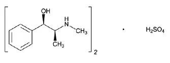 Es ist eine klare farblose sterile Lösung für die intravenöse Injektion. Der chemische Name von Ephedrinsulfat ist Benzenemethanol α- [1- (Methylamino) Ethyl]-[R- (r*S*)]-Sulfat (2: 1) (Salz) und das Molekulargewicht 428,5 g/mol. Die strukturelle Formel ist unten dargestellt: