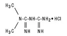 Glucophage/Glucophage XR enthält das Antihyperglykämie -Wirkstoff Metformin, das ein Biguanid in Form von Monohydrochlorid ist. Der chemische Name von Metforminhydrochlorid ist N N -Dimethylimidodicarbonimidische Diamidhydrochlorid. Die strukturelle Formel ist wie unten gezeigt: