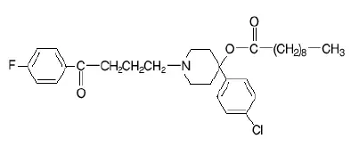 Haloperidol Decanoat ist der Decanoatester des Butyrophenon -Haldols (Haloperidol). Es hat eine deutlich erweiterte Wirkungdauer. Es ist in Sesamöl in steriler Form für die intramuskuläre (IM) -injektion erhältlich. Die strukturelle Formel von Haloperidol Decanoat 4- (4-Chlorphenyl) -1- [4- (4-Fluorphenyl) -4-Oxobutyl] -4 Piperidinyl-Decanoat ist: