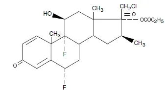 Chemisch Halobetasol-Propionat ist 21-Chlor-6α 9-DIF luoro-11β17-dihyd Roxy-16β-Methylpregna-14-Dien-3-20-Dion 17-Propionat C 25 H 31 CIF 2 O 5 . Es hat die folgende strukturelle Formel: