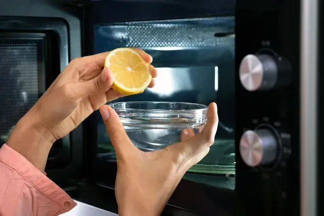 Um Lebensmittelgerüche oder gehärtete Speisen in der Mikrowelle in der Mikrowelle zu entfernen, mischen Sie 6 Esslöffel Backpulver oder 1/2 Tasse Zitronensaft mit 1 Tasse Wasser in einem Mikrowellen-Safe-Glasbehälter. Mikrowellen Sie die Mischung, bis sie kocht, und lassen Sie sie mit geschlossener Tür innen, bis sie abkühlt. Der Dampf löst den Schmutz und erleichtert es, das Innere der Mikrowelle abzuwischen.