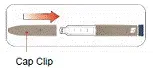 - Ersetzen Sie die Stiftkappe, indem Sie den Kappenclip durch die Dosisanzeige auskleiden und gerade einschalten.
