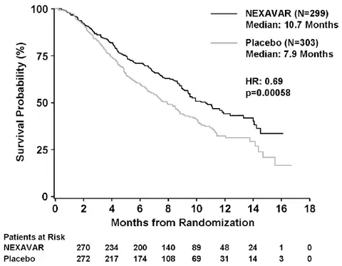 Nexavar ist für die Behandlung von Patienten mit fortgeschrittenem Nierenzellkarzinom (RCC) angezeigt.