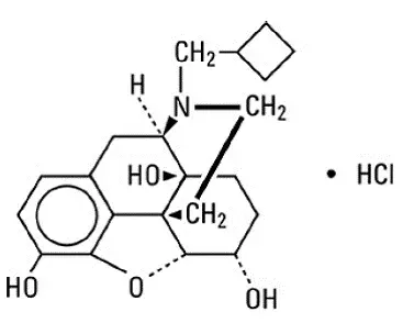 Nalbuphine-Hydrochlorid ist ein synthetisches Opioid-Agonisten-Antagonist-Analgetika der Phenanthrenerie. Es ist chemisch sowohl mit dem weit verbreiteten Opioidantagonisten -Naloxon als auch mit dem starken Opioid -Analgetika -Oxymorphone verwandt. Chemisch Nalbuphinhydrochlorid ist 17- (Cyclobutylmethyl) -45α-Epoxymorphinan-36α14-Triolhydrochlorid. Das Molekulargewicht von Nalbuphine Hydrochlorid beträgt 393,91 und ist in H löslich 2 O (NULL,5 mg/ml bei 25 ° C) und Ethanol (NULL,8%); unlöslich in Chcl 3 und Äther. Nalbuphine Hydrochlorid hat PKA -Werte von 8,71 und 9,96. Die molekulare Formel ist c 21 H 27 NEIN 4 • HCl. Die strukturelle Formel lautet: