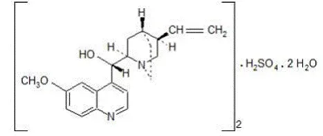 Quinidinsulfat ist ein spezifischer Inhibitor des CYP2D6-abhängigen oxidativen Metabolismus, der in Nedexta verwendet wird, um die systemische Bioverfügbarkeit von Dextromethorphan zu erhöhen. Der chemische Name ist Chinidinsulfat: Cinchonan-9-O1 6'-Methoxy- (9s) Sulfat (2: 1) (Salz) Dihydrat. Chinidinsulfat Dihydrat hat die empirische Formel von (C) 20 H 24 N 2 O 2 ) 2 • H. 2 ALSO 4 • 2H 2 O mit einem Molekulargewicht von 782,96. Die strukturelle Formel lautet: