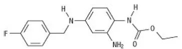 Der chemische Name von Ezogabin ist N- [2-Amino-4- (4-Fluorobenzylamino) -Phenyl] Carbaminsäure-Ethylester und hat die folgende Struktur: