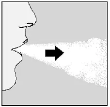- Halten Sie Ihr Handihaler -Gerät in horizontaler Position und halten Sie Ihren Kopf aufrecht, wenn Sie beim Einatmen gerade nach vorne schauen.
