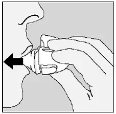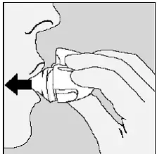 - Halten Sie den Atem einige Sekunden lang an und nehmen Sie gleichzeitig Ihr Handihaler -Gerät aus Ihrem Mund.