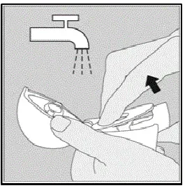 - Nicht Verwenden Sie Ihr Handihaler -Gerät, wenn es nass ist. Bei Bedarf können Sie die Außenseite des Mundstücks mit einem sauberen, feuchten Tuch reinigen.
