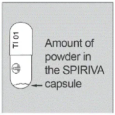 Inhalationspulver : Spiriva Handihaler besteht aus Spiriva -Kapseln, die Tiotropiumpulver für orale Inhalation und ein Handihaler -Gerät enthalten. Spiriva -Kapseln enthalten 18 mcg Tiotropium (äquivalent zu 22,5 mcg Tiotropium -Bromid -Monohydrat) in einer hellgrünen harten Gelatin -Kapsel mit Ti 01 auf einer Seite und Boehringer Ingelheim Company -Symbol auf der anderen Seite. Das Handihaler -Gerät ist nur für die Verwendung mit den Spiriva -Kapseln gedacht.