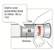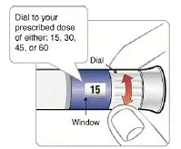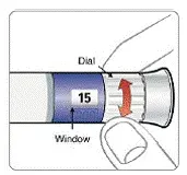 - Drehen Sie das Zifferblatt, um die richtige Dosis auszuwählen, die Sie injizieren müssen.