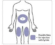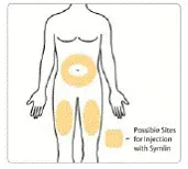 - Injektionsstellen für Symlin (Drehen) in Einspritzstellen ändern. Injizieren Sie Symlin an einem Ort, der mehr als 2 Zoll von Ihrer Insulininjektion entfernt ist. Nicht Injizieren Sie Symlin und Insulin in derselben Stelle.