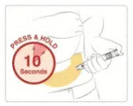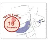 - Legen Sie Ihren Daumen auf den Knopf und schieben Sie den Knopf ganz hinein, bis er aufhört. Sie sollten das Klicken hören, während Sie den Knopf hinein und halten Zählen Sie langsam auf 10 um Ihre volle Dosis zu geben.
