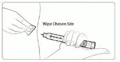 - Wischen Sie die Haut mit einem Alkoholabstrich ab und lassen Sie die Injektionsstelle trocknen, bevor Sie Ihre Dosis injizieren.