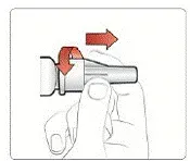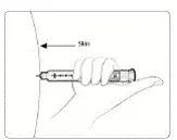 - Wenn du nicht see a line arrow Und the number of your dose nicht die Dosis injizieren. Zeigen Sie die Nadel von Ihnen weg und drücken Sie den Knopf ganz hinein, bis er anhält, und wiederholen Sie dann Schritt 8 auf Schritt 10.
