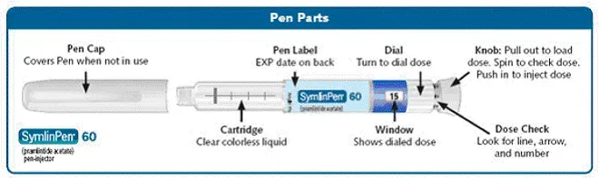 - 1,5 ml Einweg -Multidose -Sym -Clinp ® 60 Pen-Injektor mit 1000 mcg/ml pramlintide (als Acetat).