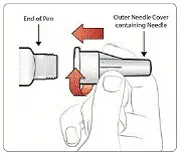 - Ziehen Sie die Außennadelabdeckung ab. Wirf es nicht weg.