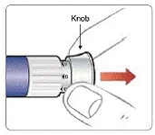 - Sobald der Knopf herausgezogen wurde, wird sich das Zifferblatt nicht bewegen und Sie können Ihre Dosis nicht zurücksetzen. Wenn die korrekte Dosis nicht im Knopf ausgewählt wurde, um die Dosis zu verwerfen und die Anweisungen zu wiederholen. Wenn der Knopf auf den ganzen Weg gedrückt wird und Sie die Dial -Anrufinformationsunterstützung nicht drehen können.