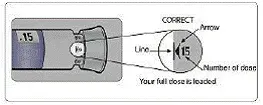 - Überprüfen Sie, ob Sie die Zeile sehen, um sicherzustellen, dass Sie Ihre vollständige Dosis geladen haben. Sie sollten einen Zeilenpfeil und die Anzahl Ihrer Dosis sehen.