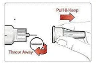 - Ziehen Sie die innere Nadelabdeckung ab und werfen Sie sie weg.