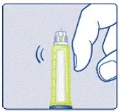 - Halten Sie den Stift mit der Nadel nach oben. Tippen Sie ein paar Mal sanft auf den Stift, um Luftblasen nach oben zu erheben (siehe Abbildung i).
