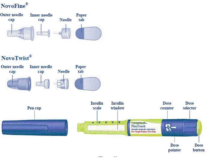 - Verwenden Sie bei Patienten mit Sehbehinderung, die auf hörbaren Klicks beruhen können, um ihre Dosis zu wählen, mit Vorsicht von Tressiba Flextouch -Stiften.