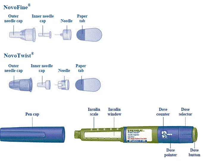 - Tresiba U-100 ist als einzelner Patienten mit Flextouch-Stift und mehreren Dosisfläschchen erhältlich.