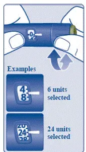 - Drehen Sie die Dosisauswahl oder bis sie anhält. Der Dosiszähler wird mit der Anzahl der Insulineinheiten übereinstimmen, die in Ihrem Pe n sind. Wenn der Dosisschalter 160 t zeigt, sind es in L East 16 0 un, es ist in Ihrem Stift.
