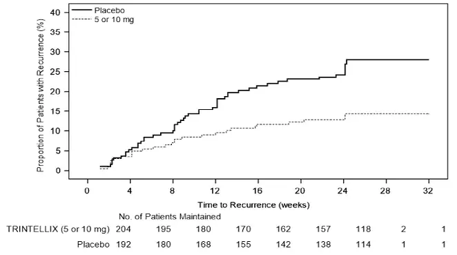 Obwohl Trintellix in placebokontrollierten Studien plötzlich abgebrochen werden kann, haben Patienten nach abrupter Abnahme von Trintellix 15 mg/Tag oder 20 mg/Tag vorübergehende Nebenwirkungen wie Kopfschmerzen und Muskelverspannungen. Es wird empfohlen, die Dosis für eine Woche auf 10 mg/Tag zurückzuführen WARNUNGS AND VORSICHTSMASSNAHMEN Und Nebenwirkungen ].