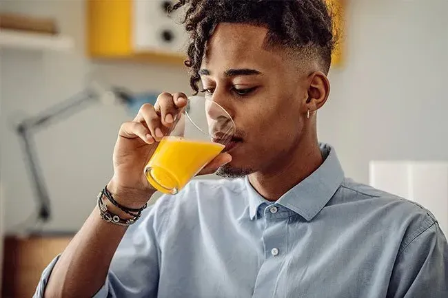 Genießen Sie ein Glas Orangensaft, aber übertreiben Sie es nicht. Neben Nährstoffen ist es auch mit Zucker und Kalorien gepackt.