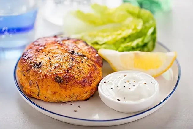 Für eine leicht vorbereitete Mahlzeit probieren Sie gebackene Fischkuchen mit Lachs aus der Dose.